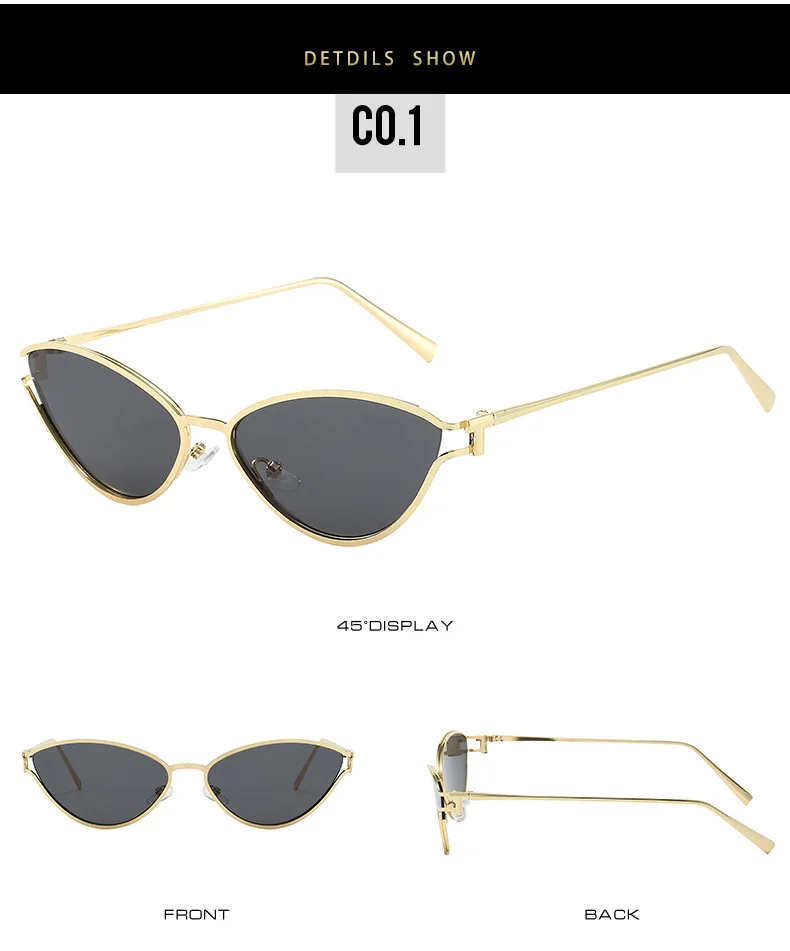 Brand Small Cat Eye Sunglasses Women Luxury 2042 Unique Metal Frame Brown Sun Glasses Trendy UV400 Eyewear Shades Vintag